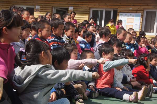 在明媚的阳光下,孩子们享受着最美丽的故事,相信语言的美、文化的美已经悄然浸润了孩子的心田。