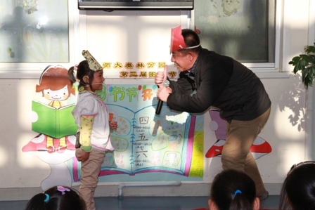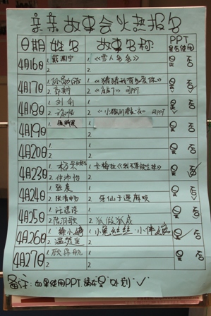 “亲亲故事会”作为奥林分园2012年图书节“大家一起来看书”系列活动之一,其目的旨在为家长提供一个给全园小朋友讲故事的平台,进而增进亲子关系和家园联系。4月16日至4月27日,傍晚离园时间里都会有两位自愿报名的家长前来给小朋友们讲好听的故事,形式多样,或亲子演故事、或家长讲故事、或家长演故事均可。还等什么,快跟随滚球app的镜头去活动现场看看吧!