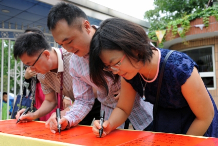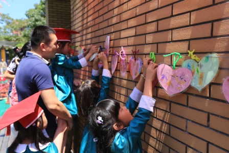 最后,孩子们传递爱心蜡烛,挂心愿卡,一起放飞梦想……再见了,亲爱的孩子们,请带着老师真心的祝福,满怀信心的出发吧,希望你们早日成材,愿你们明天更美好。