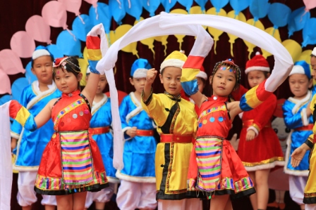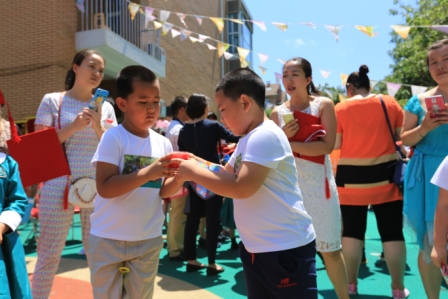 典礼上还有弟弟妹妹的倾情表演:印度舞《欢乐的跳吧》,与此同时,他们还为哥哥姐姐送上了亲手制作的礼物,祝福他们顺利地走向小学生活。