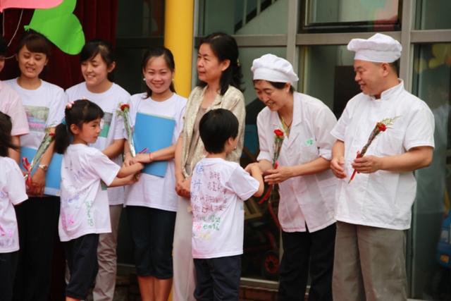 孩子们将鲜花送给各岗的老师们,表达自己的谢意