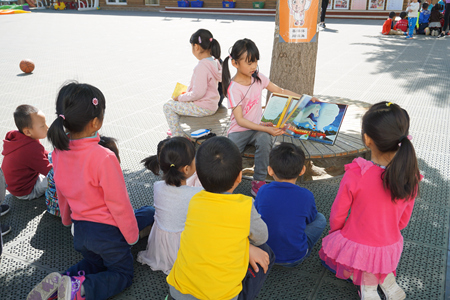 4月10——14日全园32位主班教师精心选择了适宜孩子的故事,每天在户外,分八个阅读节为全园小朋友进行了精彩的讲述,孩子们在美丽的春天里享受着阅读的美好。
