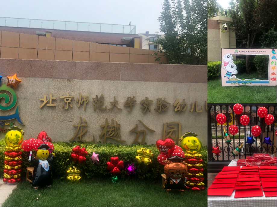 老师在幼儿园门口布置了