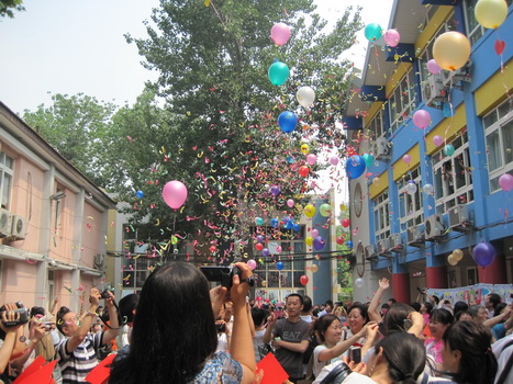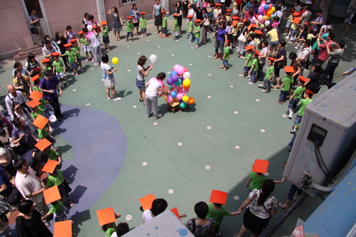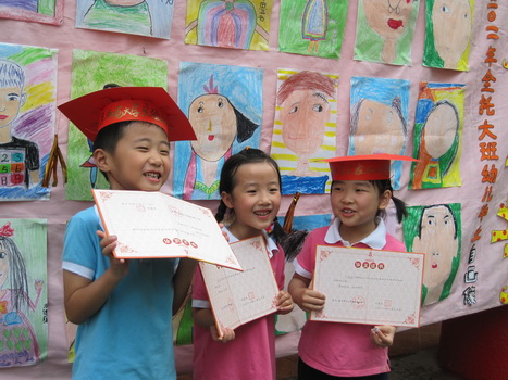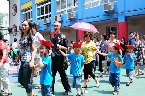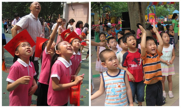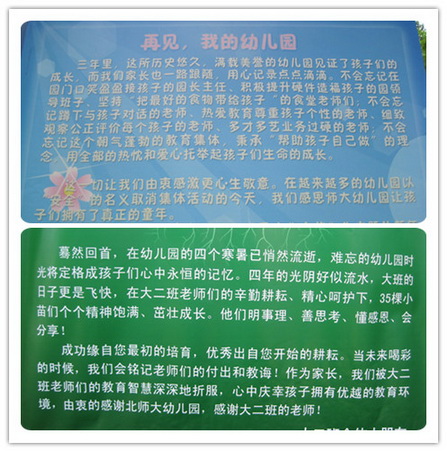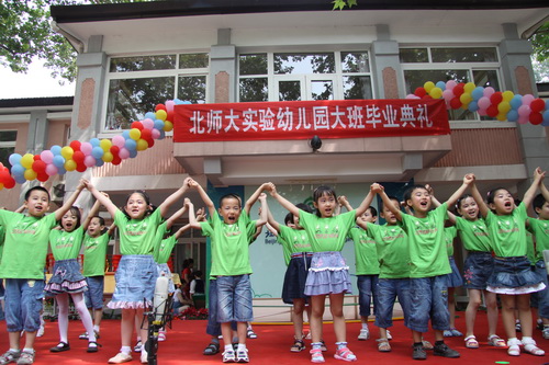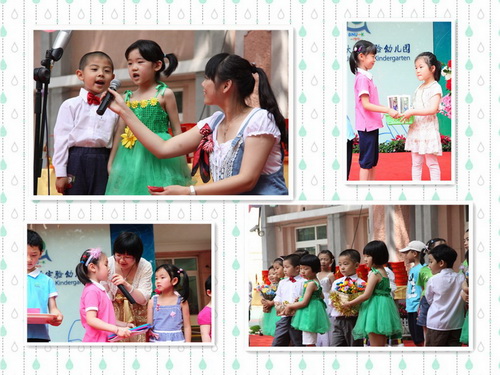 本届毕业典礼分为两场,日托和全托大班幼儿分别于2011年6月9日和10日隆重举行。在“感恩成长、放飞梦想”的主题和氛围中,在孩子、老师和家长的共同参与中,孩子们经历了人生中的第一个神圣的毕业典礼。在毕业典礼的各个环节中,可以看到孩子们自主、快乐、自信与友爱,可以感受到每一个人心头交织的感恩的心、离别的情、成长的快乐与升学的喜悦!