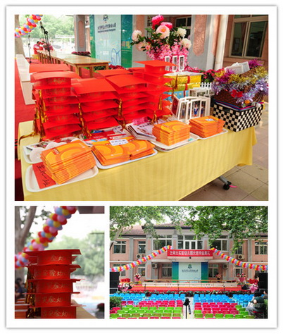整齐摆放的桌椅、证书、礼物和毕业帽,让滚球app对活动充满期待