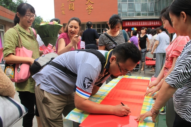 典礼开幕前,大班家长在留言簿上写下了对幼儿园、老师和孩子们的祝福
