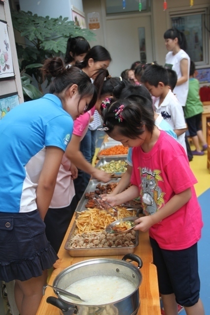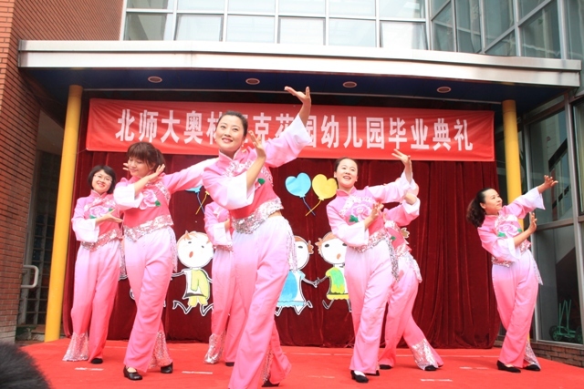 小班的弟弟妹妹用稚趣的舞蹈来表达对大班哥哥姐姐的祝福