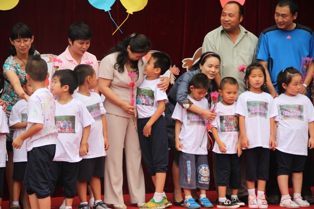 毕业班的教师代表还深情朗读《教师致词》,朗诵未毕,教师们心潮澎湃、潸然泪下。此情此景中,孩子们和家长也情不自禁地流下了惜别的眼泪,孩子们将感谢的鲜花和拥抱送给幼儿园各岗的教师们。