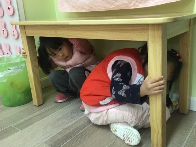 活动开始前,各班分别开展了安全教育,帮助幼儿感知地震发生时在室内避险的三个要点:蹲下、掩护、抓牢。幼儿在游戏互动中,初步了解了地震发生时紧急自救的正确方法。