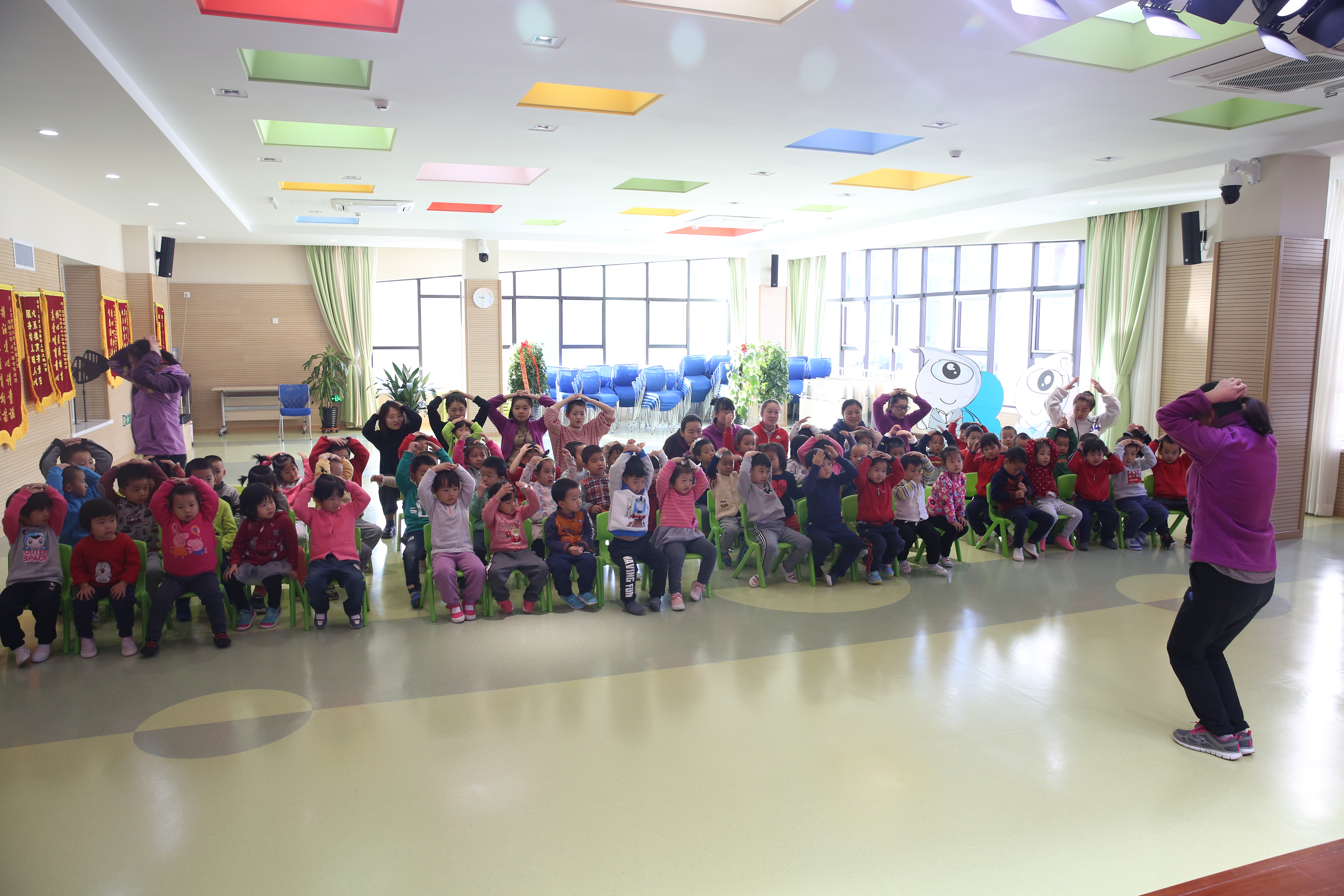 下午3时20分,“防震应急疏散演习”启动。警铃声响起,活动中的幼儿在教师指导下迅速抱头,降低身体重心躲在桌下或承重墙夹角处,实施室内避险。约20秒后,执行园长吴媛媛发布紧急疏散逃生指令,教师迅速带领全体幼儿沿指定疏散路线离开教室,紧张而有序地撤离到操场安全地带,整个演习过程历时2分10秒。