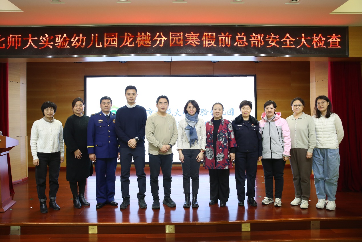 为确保幼儿园假期安全、及时排查消除安全隐患、筑牢校园安全防线,2025 年 1 月 8 日,在正规滚球app官方网站夏华颖总园长的带领下,北京师范大学副总务长赵强、保卫处副处长王皓莅临龙樾分园进行假期前全面的安全检查工作,同时还特别邀请了我园法治副园长王木香警官和清河消防中队王会伟指导员一同来园检查指导,随行前来进行检查工作的还有总园长行政助理鞠亮、总务督导江克玲和总部教研员吴迪。