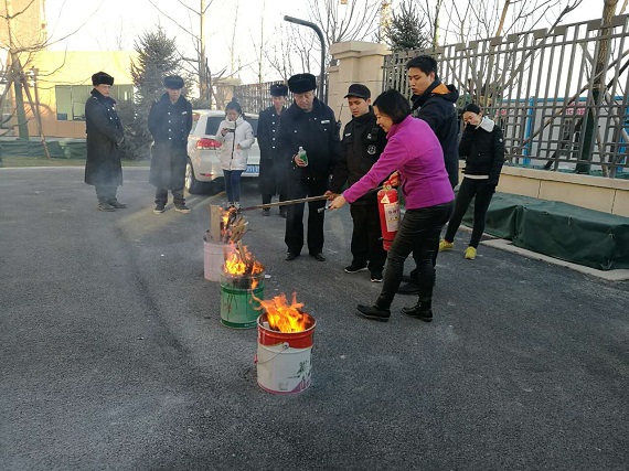 接着,全体教职工还在操场实地进行了明火扑灭活动,正确学习使用灭火器和水带。