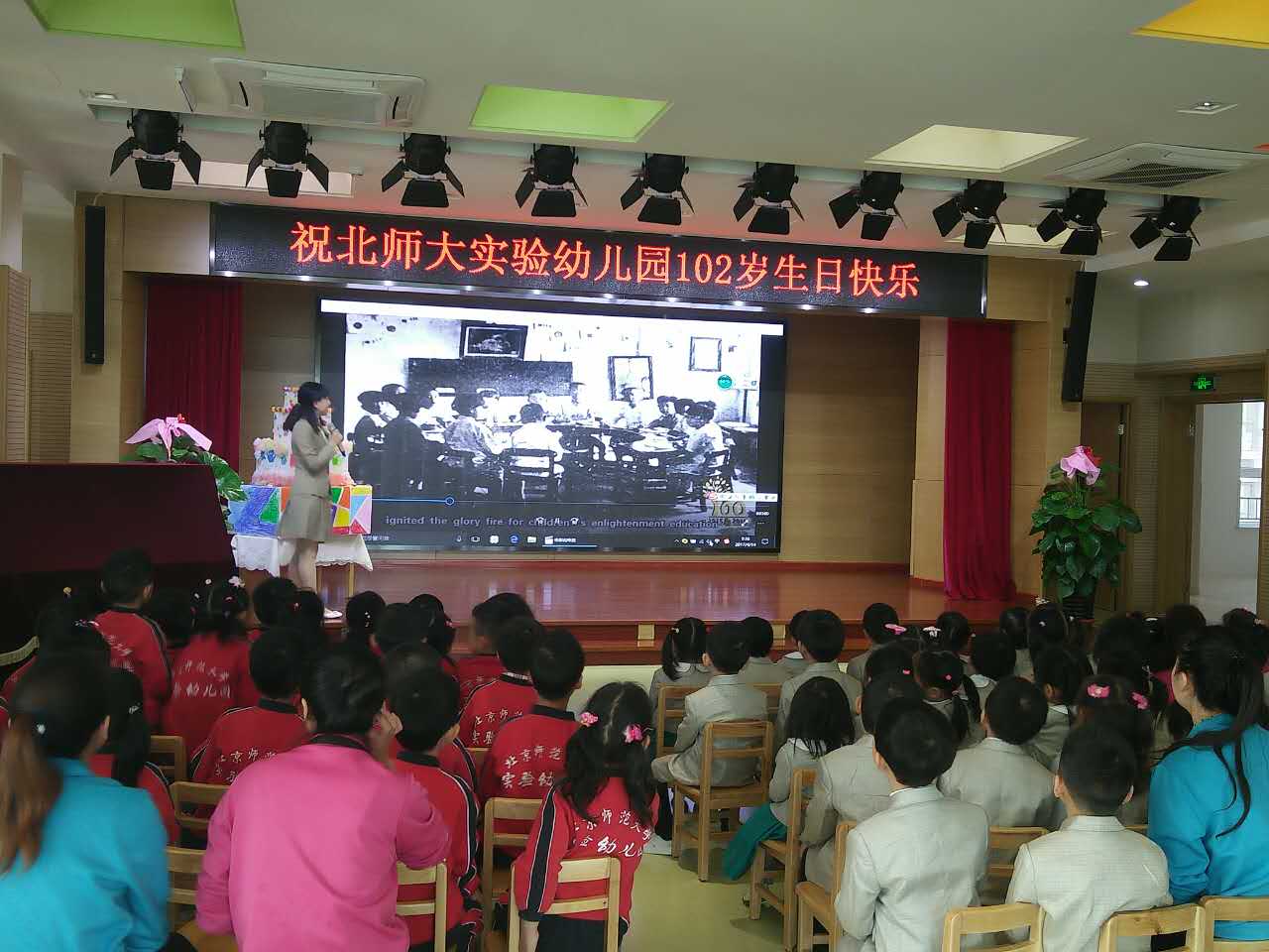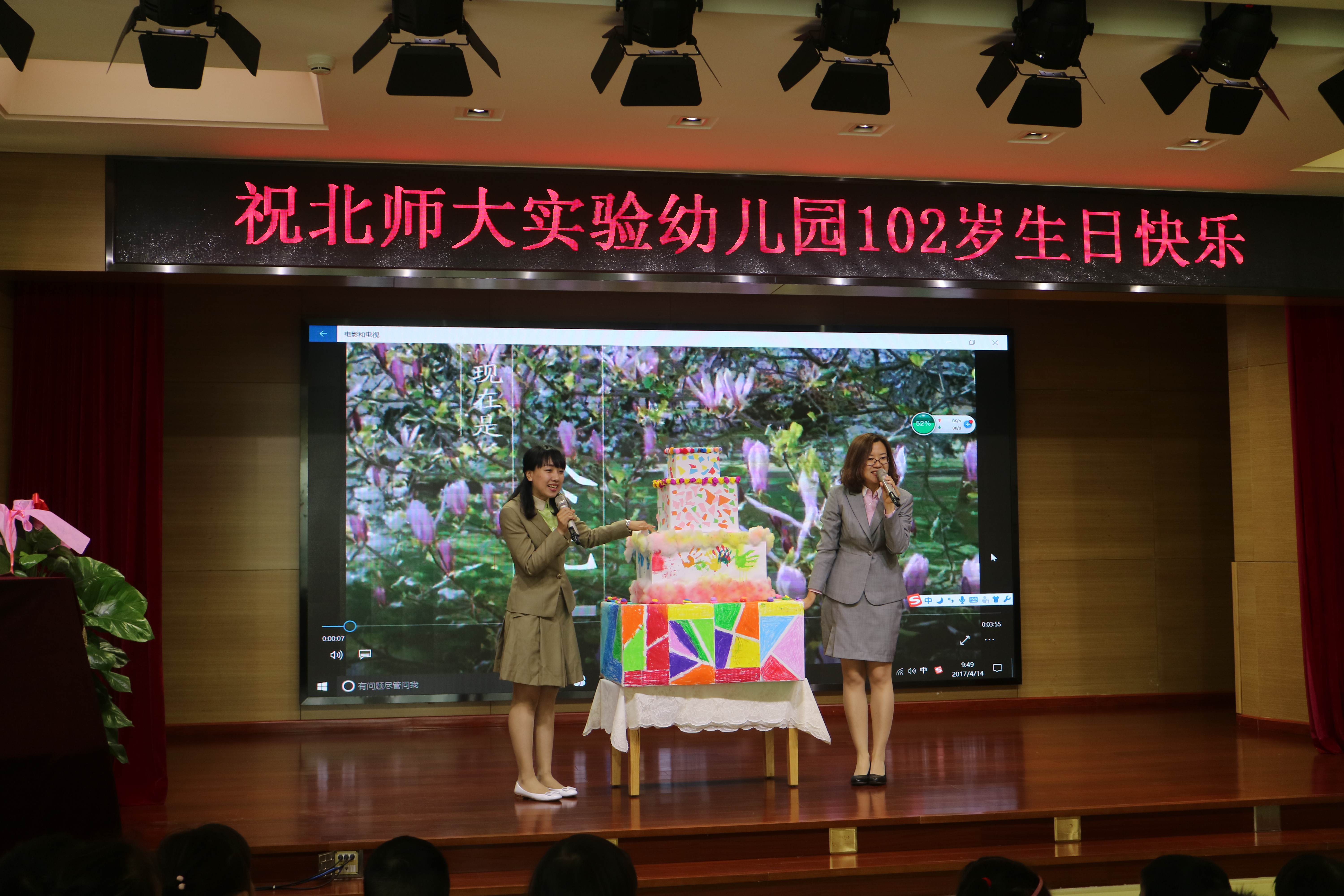 宁娜老师主持生日会,欣赏园史,感受幼儿园百年来的变化。