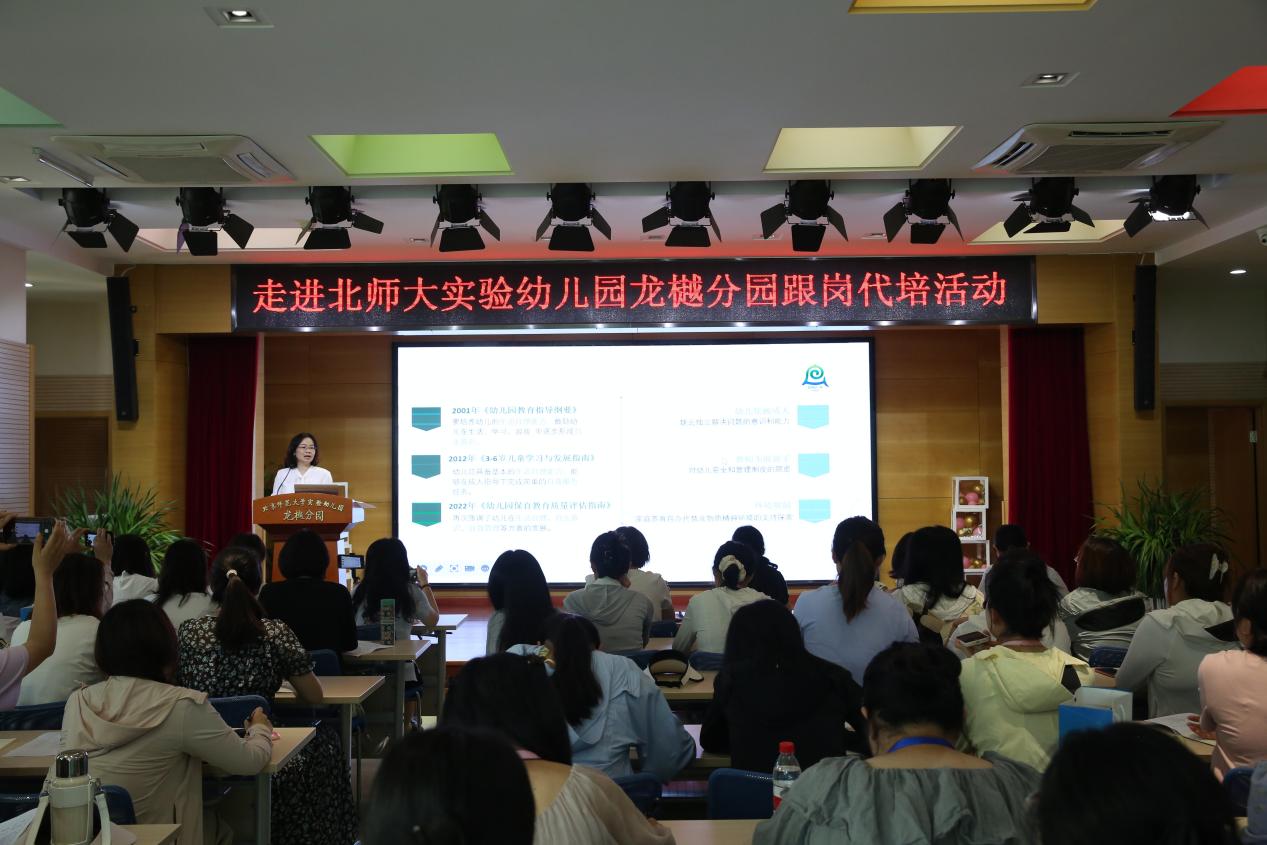 首先,龙樾分园执行园长熊庆华面向全体代培教师做《从生活自主到全面发展——幼儿园生活教育的实践与思考》的课程介绍,深入浅出的阐述了园本生活化教育课程的探索与实践。