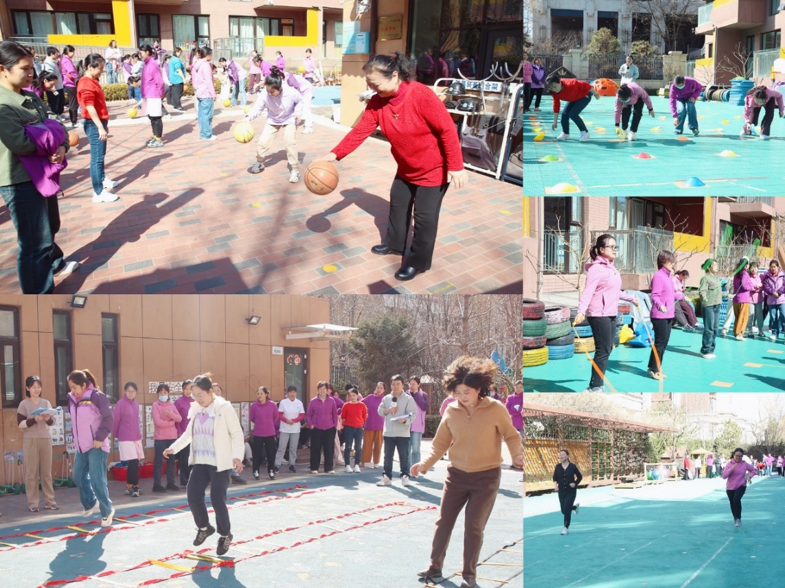 接下来,趣味运动会正式开始。本次活动项目的选择源于幼儿日常体能运动的内容,充分将教工活动与教育教学研究相结合,老师们在亲身参与、亲自体验运动的过程中,领悟到带领幼儿进行体能锻炼更加适宜有效的方式方法。在运动中,既有考验团队协作的接力赛跑,也有展现个人技能的单摇跳绳、拍球,还有充满趣味性的翻翻乐、快乐左右跳项目。每一位参赛选手都铆足劲头,默契配合,齐心协力,奋勇争先,充分展现了女老师们智慧勇敢、轻盈活泼的一面。