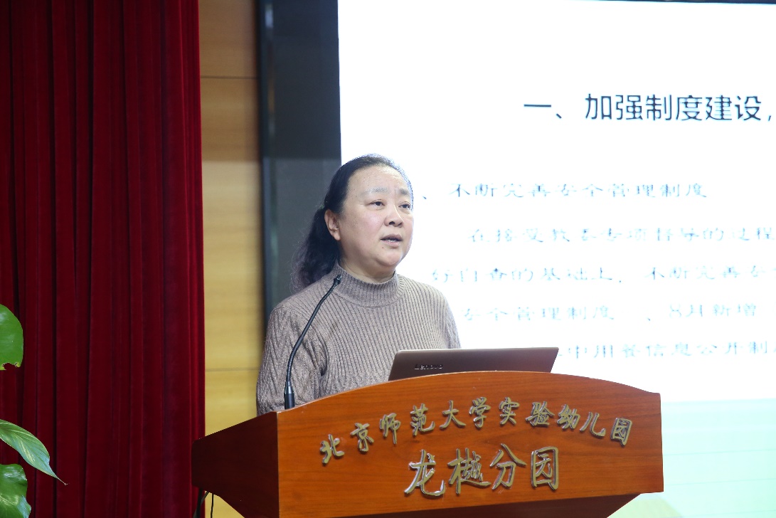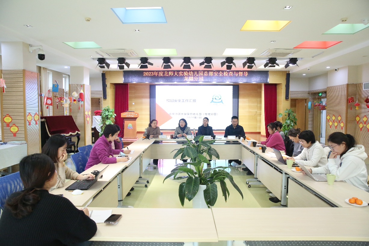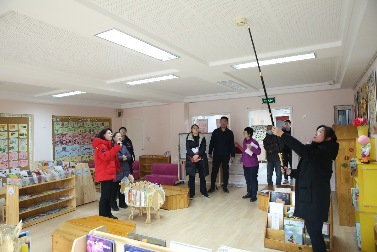 2024年1月16日下午,在正规滚球app官方网站黄珊总园长的带领下,北京师范大学总务处项若瑾副处长、廖春成副主任以及保卫处韩枭戈副处长、物业分管消防安全的杨自芙副经理莅临龙樾分园进行假期前全面的安全检查工作,同时还特别邀请了我园法治副园长王木香警官和消防副园长李隆队长一同来园检查指导,随行前来进行检查工作的还有总园长行政助理鞠亮、总务督导江克玲和总部教研员吴迪。