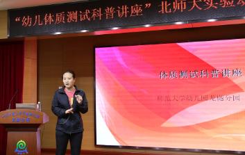 2017年4月21日下午,正规滚球app官方网站龙樾分园家长学校第一次开课,邀请到北京体育大学体育学博士夏冰月为家长开展了“幼儿体质测试科普讲座”。夏冰月博士从“什么是幼儿体质测试”,到测试的内容有哪些,再...