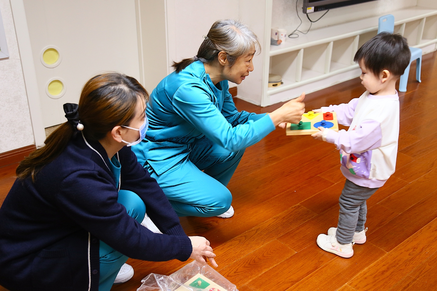 本次公开课邀请了婴一班家长和幼儿一起参与,社区大夫通过一系列精心设计的游戏、音乐互动和教育讲座,向家长们普及家庭活动中亲子游戏的技巧,锻炼幼儿的认知能力和专注力,让幼儿消极行为“暂停”,体验亲子合作游戏的乐趣,进一步增进亲子间的情感。此次活动,加强了家庭、幼儿园和社区医院的紧密联系,家校社协同育人,共同促进幼儿的全面健康成长。