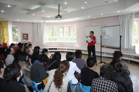 北体大夏博士向家长们做体能锻炼课题研究中期汇报,同时阐述了为什么要从小参加体育运动、怎样从小进行科学锻炼、锻炼时应注意的问题等。