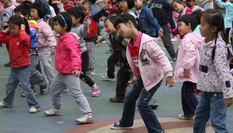 在体能锻炼中,培养愉快、主动、大胆、自信、不怕困难的孩子
