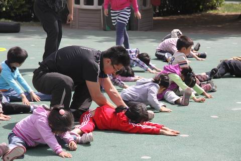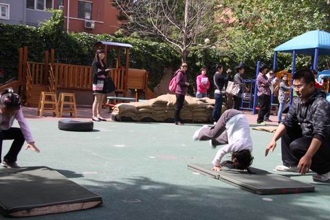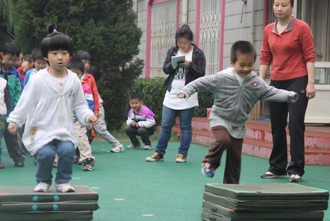 三、北体大博士开展“幼儿体能锻炼课程研究”,托三班和托五班作为实验班,率先开展各种体能训练,收效明显。中期,组织了家长开放和研讨会。