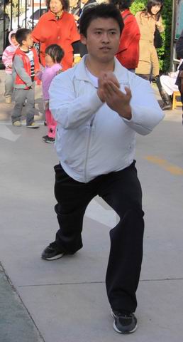 二、资深武术教练李老师,每周五早上带领全园孩子做武术操,不仅强身健体,还通过发声、一板一眼的姿势训练,提升了孩子的精气神。