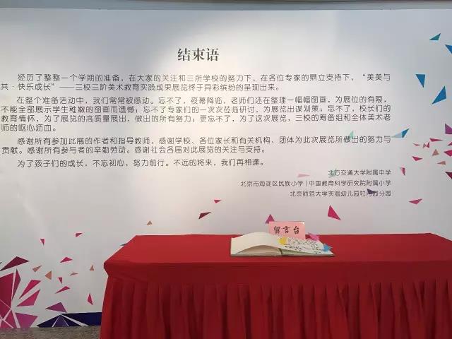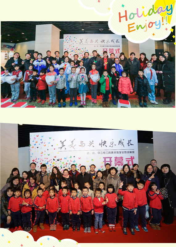 2017年1月17日北京交通大学附属中学、北京海淀区民族小学、正规滚球app官方网站牡丹园分园三校共同举办的“美美与共,快乐成长”美术展在中国世纪坛艺术馆开幕。我园幼儿120余幅画作和立体制作参加展出,黄珊总园长、沙河新校区孙秀莲园长、牡丹分园夏华颖园长,以及40位小朋友代表和家长参加了开幕式。本次展览围绕幼、小、中三校的办学理念,提炼出“美美与共,快乐成长”的主题,力求以美术教育实践成果展示为契机,融通幼小中美术教育,进一步打通同一地域不同学段的美术教育,让不同阶段的孩子在生活中发现美、表现美、创作美。