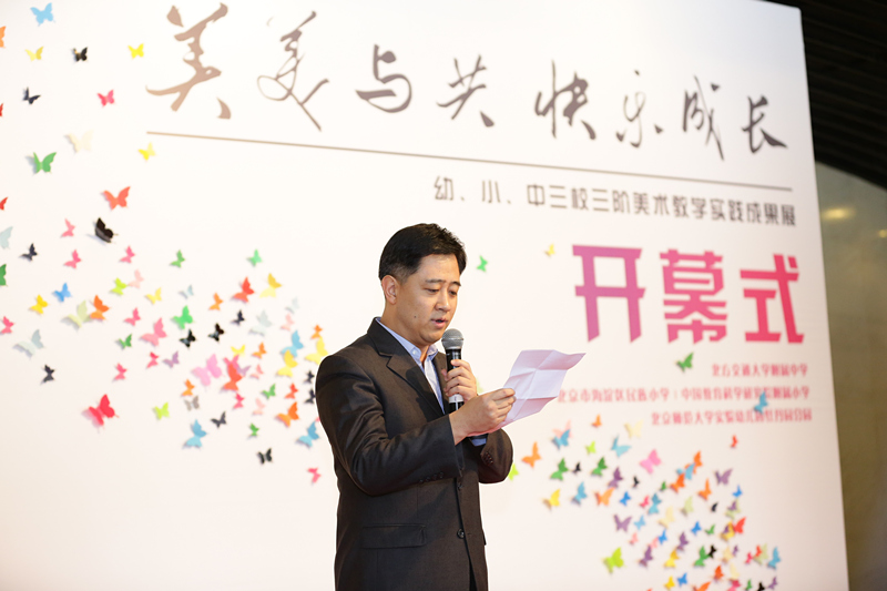 海淀区人民政府督导室副主任屠永永发表讲话,他表示本次两校一园美术教育实践成果展非常有意义,创建了研究教育的全新视角,为地区教育带了好头。且有两点感受。第一,有大教育观。从孩子成长的角度,研究美术教育规律。第二,有大的格局。从地区教育的发展,研究学生成长规律。屠主任指出,海淀区最近实行的学区制改革,就是要打通教育壁垒,共享优质教育资源,让地区的孩子们健康快乐地成长。培养学生核心素养,是当下我国基础教育课程改革乃至整个基础教育改革的一个热词。如何让核心素养真正落地,今天滚球app就看到一个鲜活的实例。核心素养关注的是人,关注的是学生整体发展的情况。今天,滚球app就从幼儿到中学,去感受不同阶段的孩子们在生活中发现美、表现美、创造美。从而感受孩子们成长的轨迹。