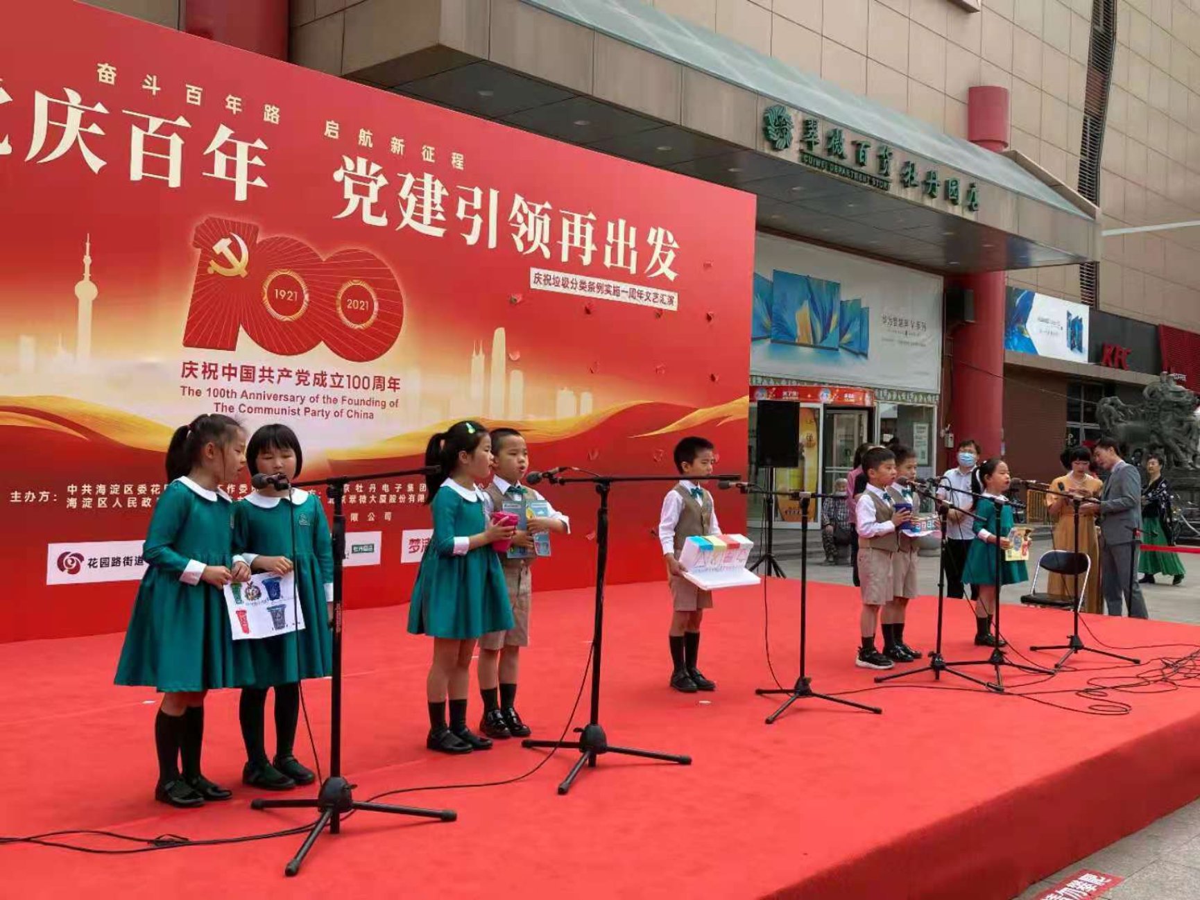 当日,我园大三班小朋友还应邀参加了花园路街道在牡丹集团广场举办的“初心向党百年 党建引领再出发”庆祝垃圾分类条例实施一周年文艺汇演,小朋友带来的师生原创歌谣《七彩生活》、音乐剧《英雄王小二》,受到大家的喜爱。
