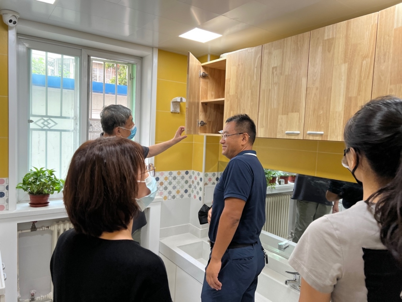 家长及各方代表共同参观了已基本施工完毕的幼儿盥洗室,经过现场的实地观看和家长代表自带的空气质量检测仪测试,大家对目前工程环保情况表示非常认可和放心。特别是通过此次现场会议,家长们了解到幼儿园使用的材料总体优良明显优于市场标准,特别感动于园方每日的认真坚守和严格把关,体现了对幼儿高度负责的态度。