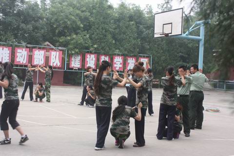 为进一步增强青年教师的组织纪律观念、集体荣誉感和团队合作精神,锻炼青年教师们不怕苦不怕累的作风,2012年9月,在黄珊总园长和牡丹园孙秀莲园长的积极倡导和细心安排下,牡丹园分园的40名青年教师们在南口国防教育基地进行了为期10天的封闭式集体军训。