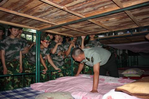 教官示范叠被子