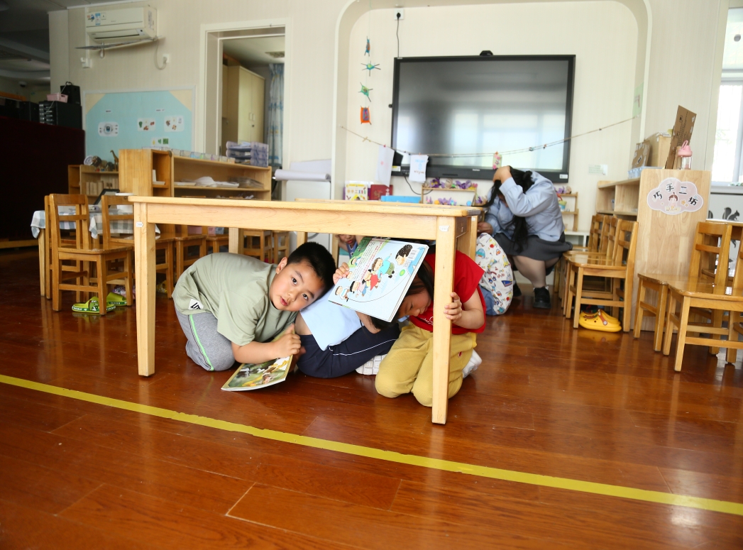今年5月12日是我国第16个全国防灾减灾日,为了提高全体教职工的应急疏散、紧急避险的能力,5月11日牡丹分园组织开展全园幼儿及教职工的防震疏散演练。11:40分随着第一遍报警声响起,老师们迅速带领幼儿就近蹲在课桌下或承重墙的墙根、墙角,用手或其他柔软物品保护好头部,卷曲身体。1分钟后,第二声警报响起,幼儿在教师的组织下按照既定的路线有序撤离。撤离过程中,幼儿保护着自己的头部,听从疏散引导的老师指引,保持秩序、控制速度、逐次疏散到达指定避险地点,教师清点人数并汇总上报,确保所有师幼无一疏漏。