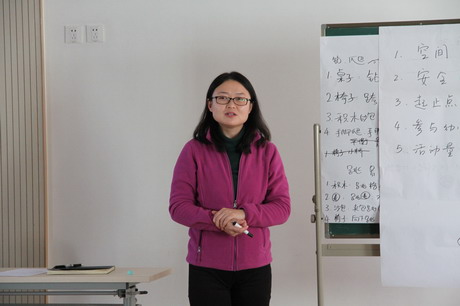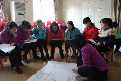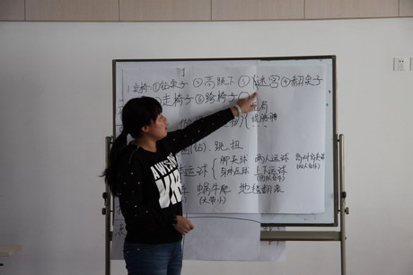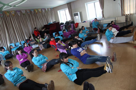 12月3日中午,牡丹分园针对雾霾天气下如何开展体育活动进行了专项研讨,教研活动以体育专职教师张蕾带领下的身体耐力与柔韧性练习开场,老师们饶有兴致地体验了平板支撑、仰卧举腿等动作,深感进行科学锻炼的必要性。然后全体教师分组,形成小班、中班、大班和混龄班四个教研组,老师们从幼儿体能发展目标、室内可以利用的简单器械等方面进行了头脑风暴式地讨论,形成了教师之间的经验共享。最后,保教主任荣柏莹对室内活动的强度、安全性、系统性进行了重点强调,倡导教师积极利用现有条件开展室内体育活动,多实践、多总结,形成一套行之有效的园本室内体能锻炼方案。