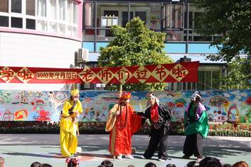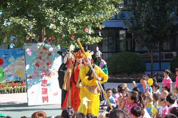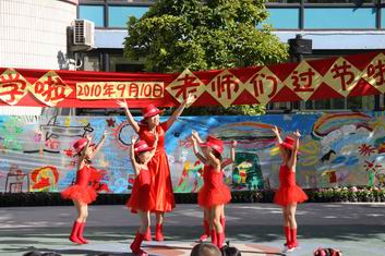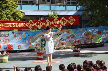 黄珊总园长首先做热情洋溢的致辞,向孩子们献上了新学期的祝福和对教师的深情慰问,并向教师们赠送了精美的园史画册。接着孙秀莲园长讲话,表达了对全体师幼的殷殷期望和无限爱心。在庆典仪式上,师生同台演出,表演了栩栩如生的情景剧《猪八戒吃西瓜——西游记》、《喜洋洋与灰太狼》、《小红帽》等精彩节目。各年级的孩子们还用歌声表达了美好的愿望。精彩节目一浪接一浪,孩子们看得津津有味。