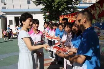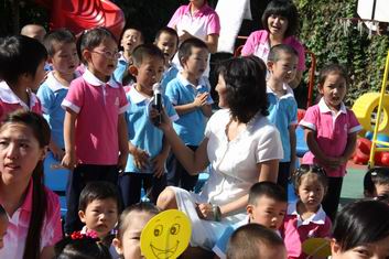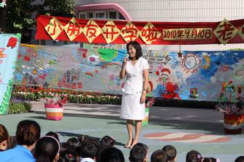 2、孙秀莲园长致辞。欢迎新入园的小宝宝们,祝贺小中大班的小朋友升班,并祝教师们节日快乐!