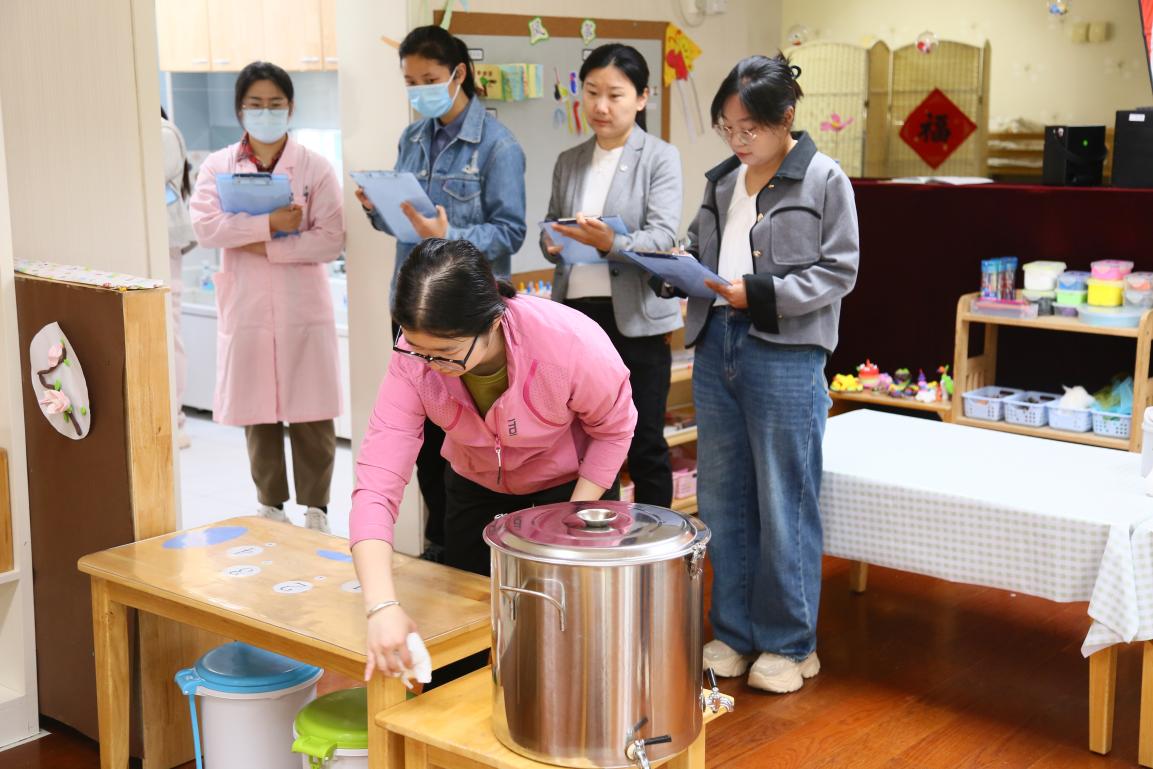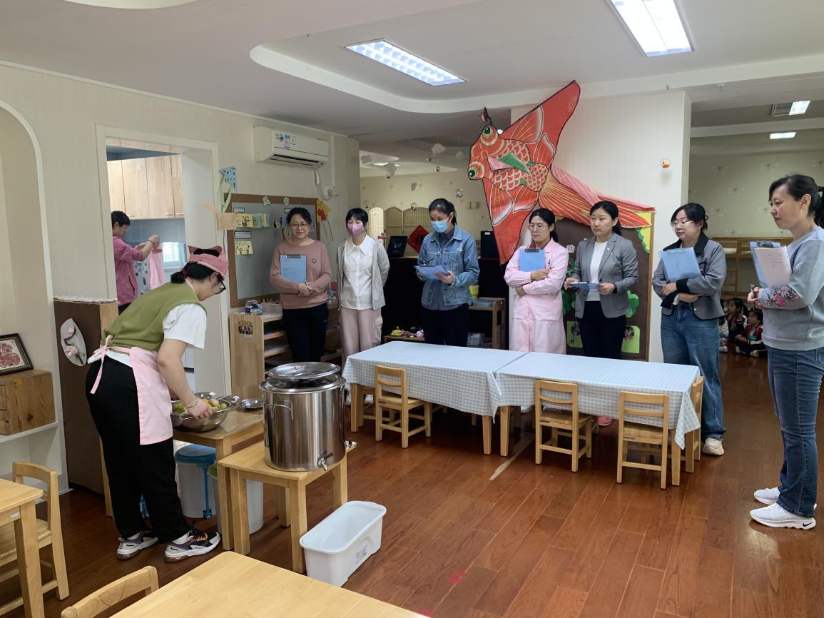 为提升新入职保育人员的工作质量,扎实落实各项保育工作要求。2024年4月17日,在总部集团培训部的部署下,由总部江克玲老师带领姊妹园龙樾分园、未来一幼的保健主管和优秀保育员,到我园对中二班新保育员詹紫妍老师进行了半日常规观摩。