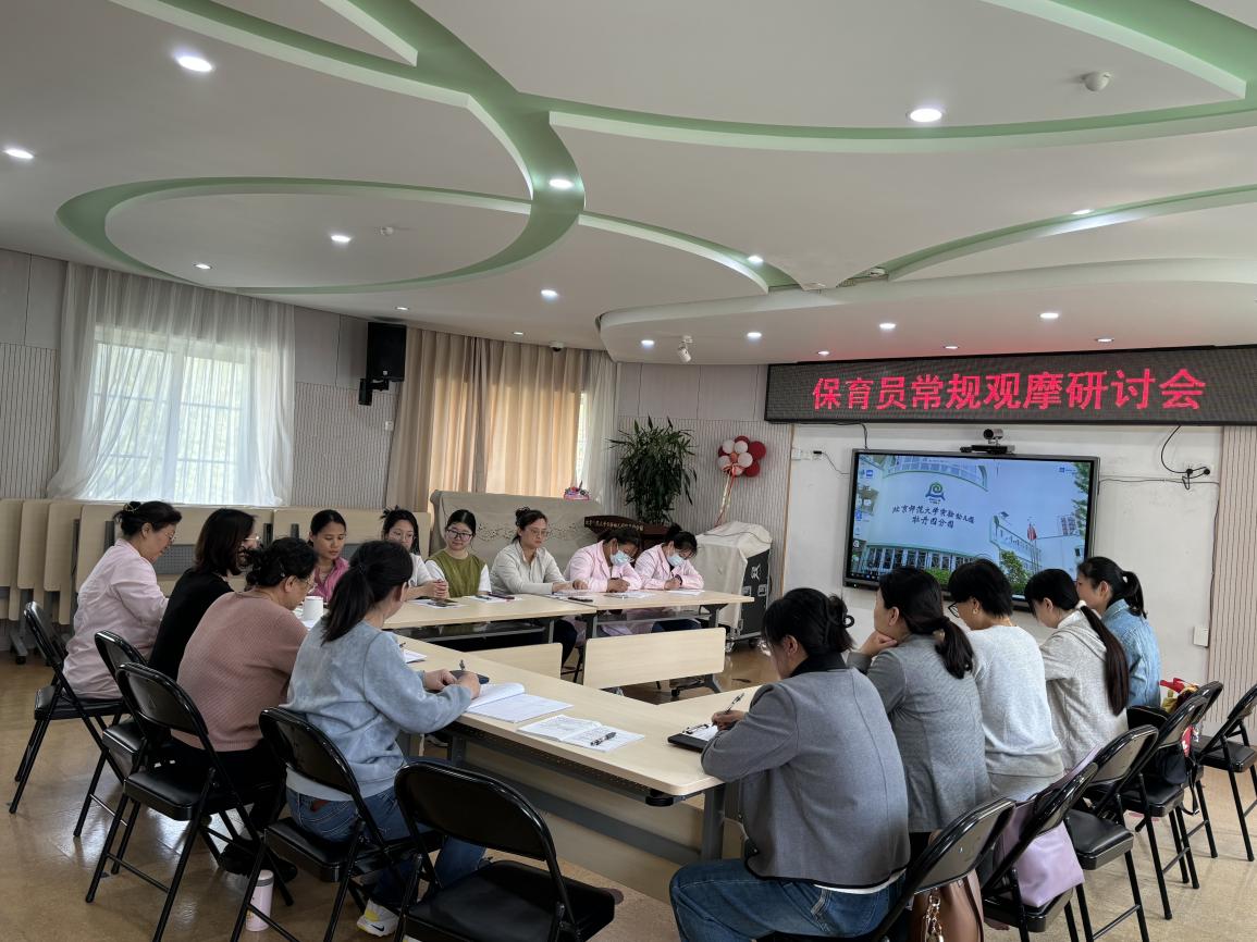 观摩小组成员对詹老师一日生活常规中的幼儿生活护理、保教配合、卫生消毒规范的执行情况进行了全面细致的现场观摩。詹老师能够按照保育员一日生活常规完成各项工作,并配合班级教师做好各个环节对幼儿常规培养的提示,关注对个别幼儿的生活护理。观摩结束后,由保健室主管组织观摩小组成员对本次新保育员半日常规观摩进行了研讨,总部集团江克玲老师、执行园长夏华颖也参与到了研讨工作中,大家充分肯定了詹老师在常规观摩中的出色表现,流程清晰,动作熟练,工作娴熟。同时在研讨过程中,领导及观摩小组成员也给予了宝贵的意见和建议。