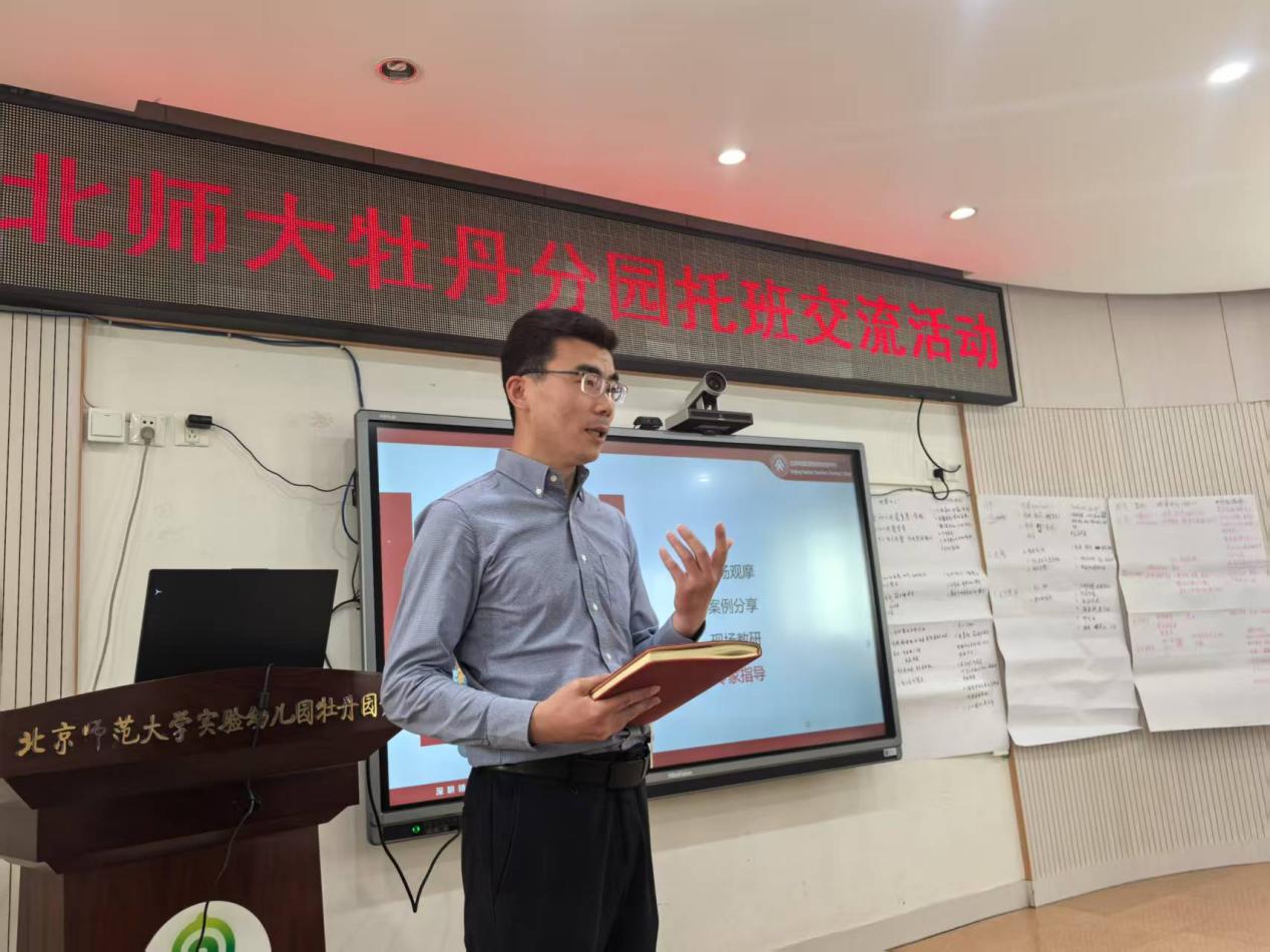 海淀区教研员田彭彭作为特邀专家进行总结点评。他高度肯定牡丹分园在托班教育实践中的创新探索,尤其对“多元环境中建立信任关系、自主游戏中激发发展潜能、自然生活中培育生活能力、家园协同中凝聚教育合力” 的四位一体模式给予赞赏。同时,田彭彭老师对全区托班教师提出殷切期望,鼓励大家深化托班环境材料的适切性研究,完善过程性评价体系,以更专业的教育智慧与人文关怀,守护托班幼儿的成长之路。