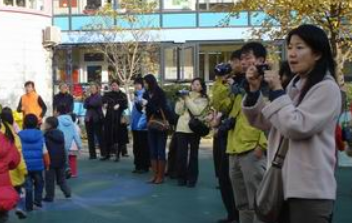 每学期例行的家长开放活动开始了。日托的大、中、小班分别组织了面向家长的半日开放活动。今年的半日开放依然延续家长分组观摩活动的做法,以保证孩子在园活动尽可能少地受到干扰。