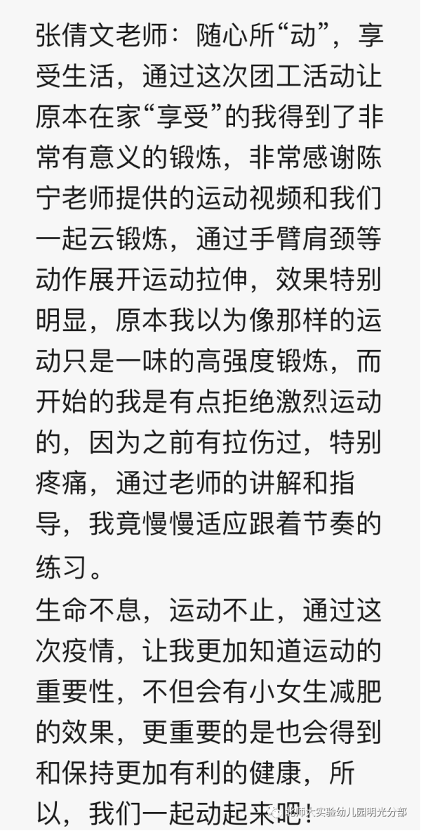 通过系列线上锻炼,线下打卡活动,老师们感受到了运动的乐趣,激发了对开启运动的兴趣。活动中,运动小组的成员们也表达了自己的收获与进步,让滚球app一起来看看吧!