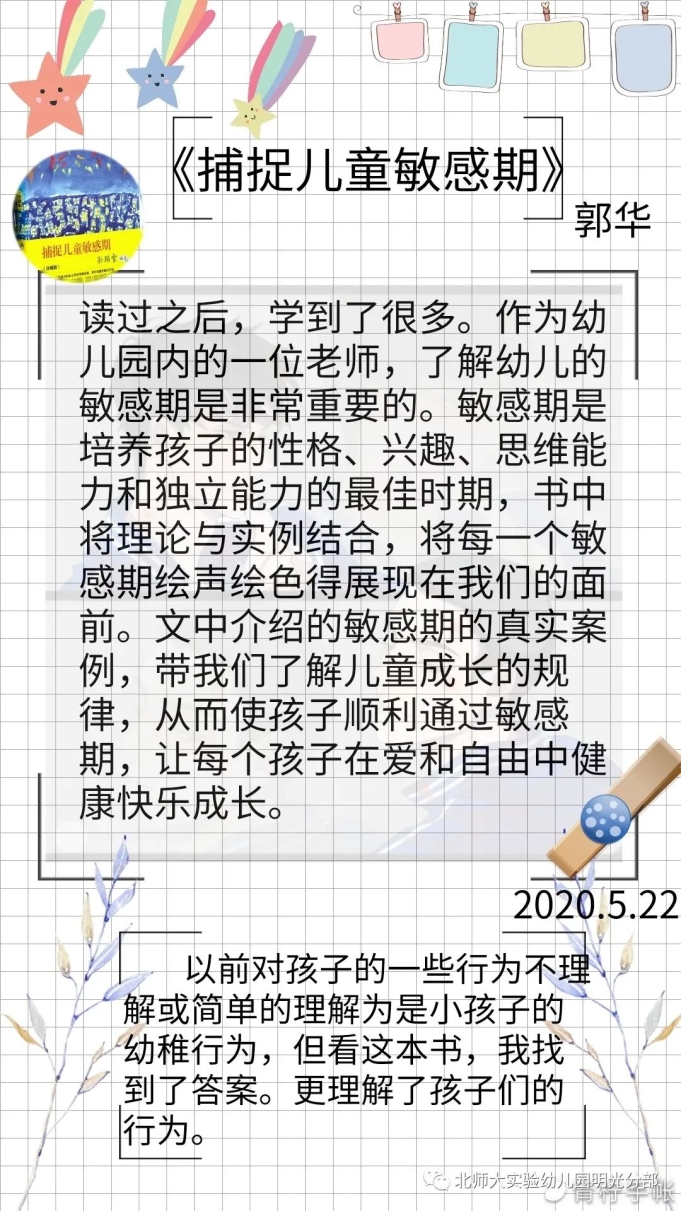 幼儿教师是一个十分幸福的职业,滚球app会接触到很多孩子,一言一行也会深刻的影响着他们。想要为孩子创造健康的环境,呵护他们健康的成长,就必须先读懂孩子。孩子心里到底有多少秘密?滚球app不妨一起来看看!这次的活动中,教师们通过阅读书籍原文和相关推送,尝试换一个角度解读孩子的行为,重新勾勒孩子的形象,并用手账的方式呈现出来。