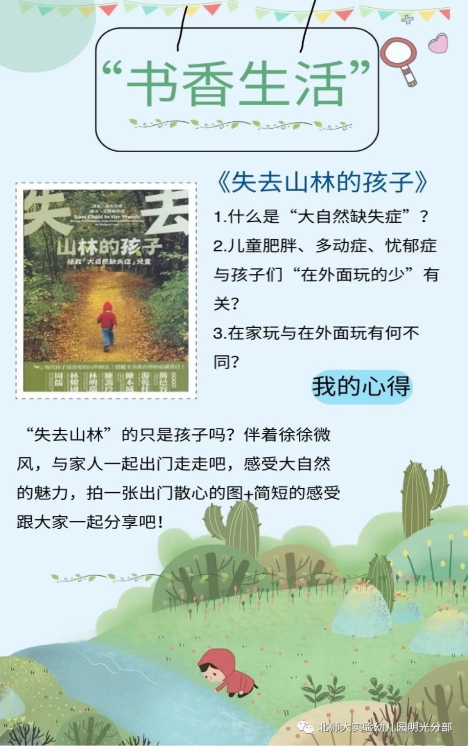 从什么时候开始,处于各种安全等方面的考虑滚球app都会尽量让孩子们远离大自然,而自己的空闲时间也几乎是躺在沙发上伴着手机度过。“失去山林”的只是孩子吗?“大自然缺失症”又会带来怎样的后果呢?或许,滚球app不仅在失去大自然,也正在流失下一代的身心健康。把自然视为生命的贺礼,教师们在阅读书籍后合理安排自己的时间,伴随着徐徐微风,与“自然”进行了一次亲密的接触。