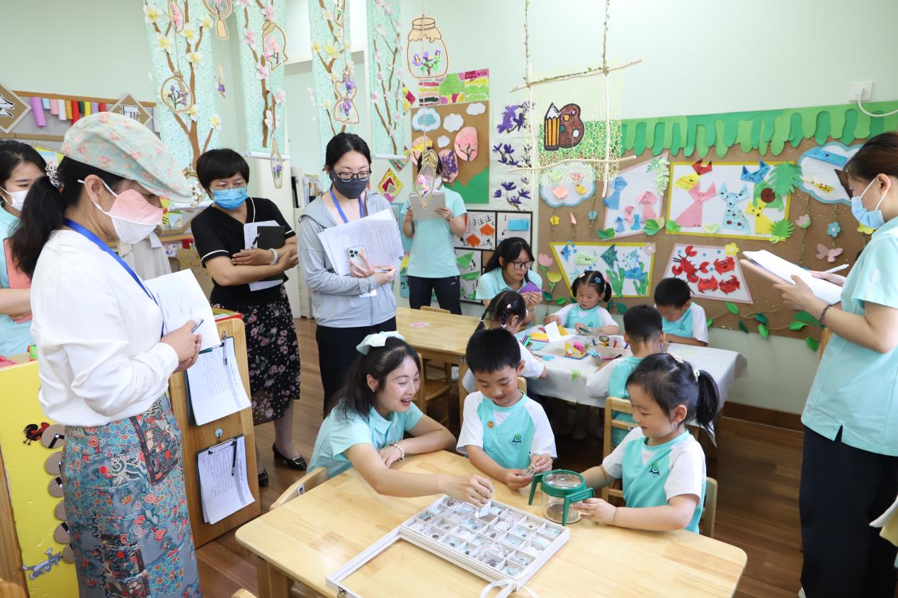 观摩结束后在保教主任王晓晔的组织带领下,新教师分两组结合半日活动现场,对照计划目标分析、研讨、表达,碰撞出准确、全面定位目标的思考点与关注点。最后培训中心主任徐兴芳邀请教研员李灵子、业务园长丁乐、督学王竺、执行园长邱守围绕音乐活动的组织、主题活动的推进、半日活动的整体组织和目标制定进行点评,帮助新教师获得了关于艺术领域的核心经验、半日活动组织的关键点、目标制定的适宜性等方面的知识与经验的提升。