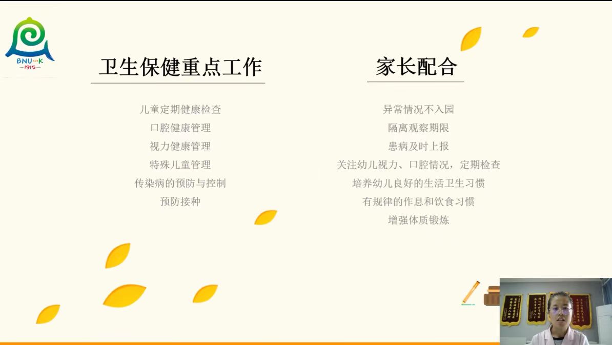 全园家长会采用线上分享的方式,执行园长邱守分享了园所的教育理念、教师队伍发展情况、未来幼儿教育的努力方向、家园共育家长如何做等方面的内容,帮助家长对园所情况、学期重点工作,家长配合形成清晰、完整的认识。保健主管郭华从健康检查、口腔管理、视力健康管理、特殊儿童管理、传染病的预防与控制、预防接种等多角度向家长们介绍了本学期卫生保健的重点工作,并从家长配合的角度提出了具体的建议。
