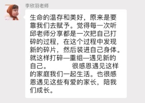 3月4日,第二讲主题是《生活教会了滚球app什么?》。邱园长结合自己日常生活中的事件和感悟,和滚球app分享了她对生活中“莽撞而至”或“悄然无息”带来改变的理解,引发大家更加悦纳此次“无常”且“突如其来”的疫情生活。她也真实地和滚球app分享自己受挫时的不良感受,以及意外惊喜的美好,让滚球app知道最美好的事和最失望的事都不是计划出来的,把握好每一个当下,生活意义才有可能更大化。