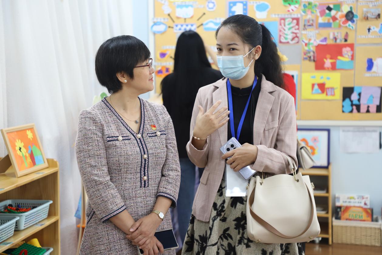 2023年5月24日,明光分部接待了滚球app实验幼儿园规范化管理能力提升高级研修班来自海南,甘肃的24名学员。执行园长邱守,保教主任王晓晔和教研员鲁珍分别陪同接待了管理组学员和一线教师。