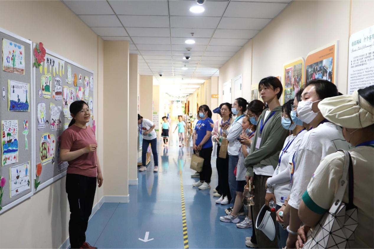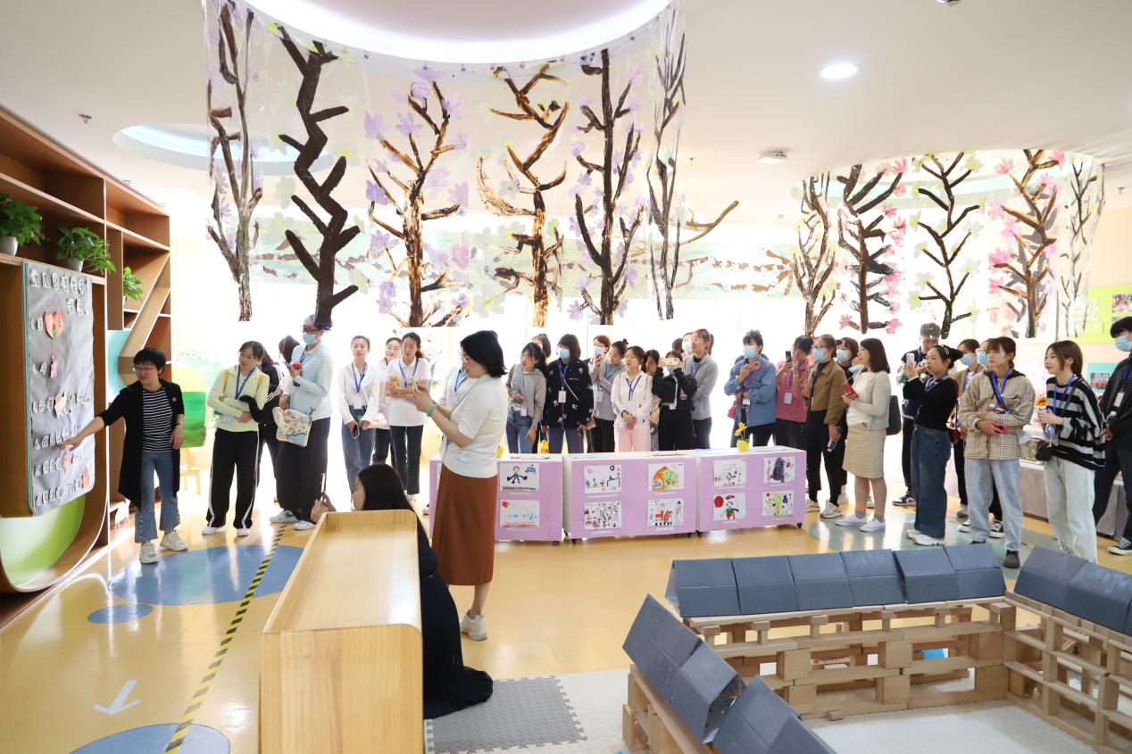 管理干部向参观人员重点介绍了明光分部大厅环境、图书馆环境、园庆文化环境等公共环境创设的理念,思路和具体做法。公共环境创设体现了我园“儿童为本”的践行和对儿童视角的理解和表达,体现了新园建设和百年文化的一脉相承,体现了艺术切入的美育环境。