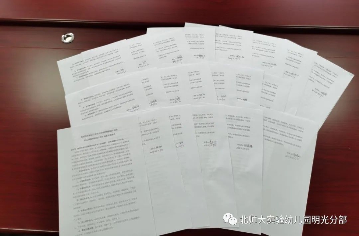 5月7日全园会上,邱园长启动师德活动,明确师德月活动意义,介绍师德月活动内容,现场大家签署了《新时代幼儿园教师行为十项准则》承诺书。