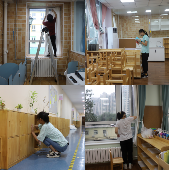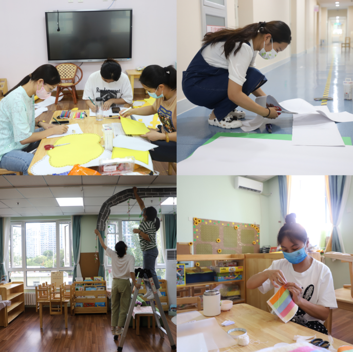 幼儿园环境创设对幼儿发展成长起着重要的作用,明光分部新学期即将开学,为了充分发挥环境育人的作用,教师们投入到紧张忙碌的开园准备当中,从卫生擦拭、教师培训到环境创设,都是为了迎接小朋友们的到来,重启幼儿园美好的生活。疫情当下卫生工作不能松懈,教师们一丝不苟地对幼儿生活、活动的场所、物品进行全面的消毒和清洁,为幼儿创设洁净安全的环境。为了更好地支持教师们创设班级环境,幼儿园开展了相关的专题培训,拓宽教师环境创设的思路。开学准备期间,老师们变身为班级环境的“设计师”,将培训所学付诸于实践。充分“留白”的墙面环境,种类丰富、趣味横生的区域游戏材料,等待着幼儿开启新学期的旅程。